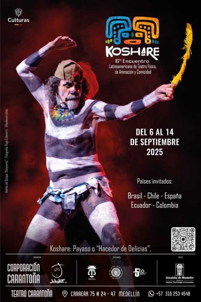 Del 6 al 13 de septiembre se celebra en Medellín el Encuentro Latinoamericano de teatro físico de animación y comicidad, denominado Koshare, en su 6ª Edición; organizado por la corporación Artística Carantoña.