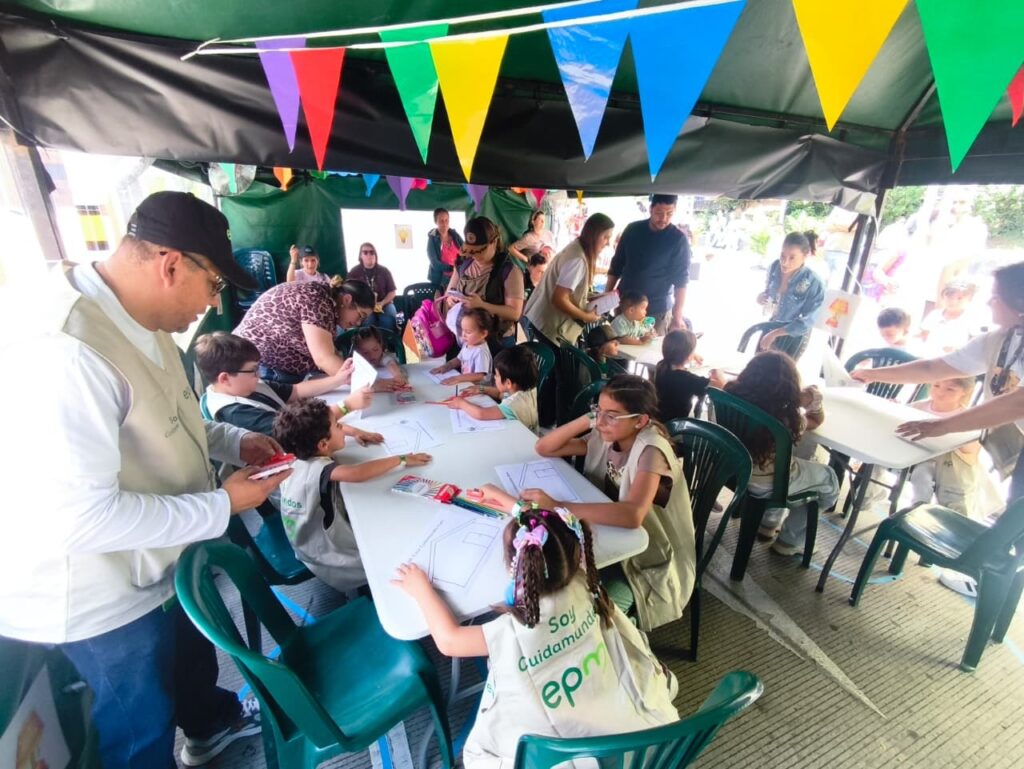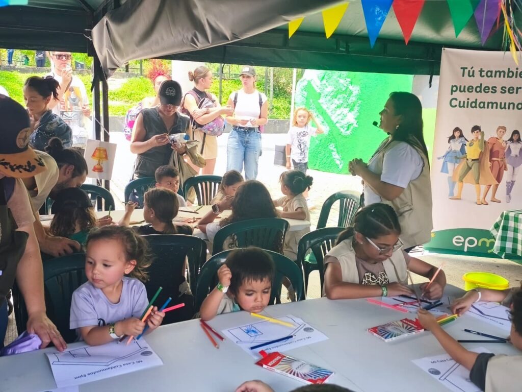 «EPM está presente en el Festival del libro infantil, que se celebra en la ciudad de Medellín y estamos en nuestra actividad del Área de Educación a Clientes comunidad de EPM, desarrollando con los niños y las familias asistentes, unos talleres, enfocados en el cuidado de los recursos naturales a través del buen uso de los servicio públicos», nos dice Eliana María Díaz funcionaria de EPM