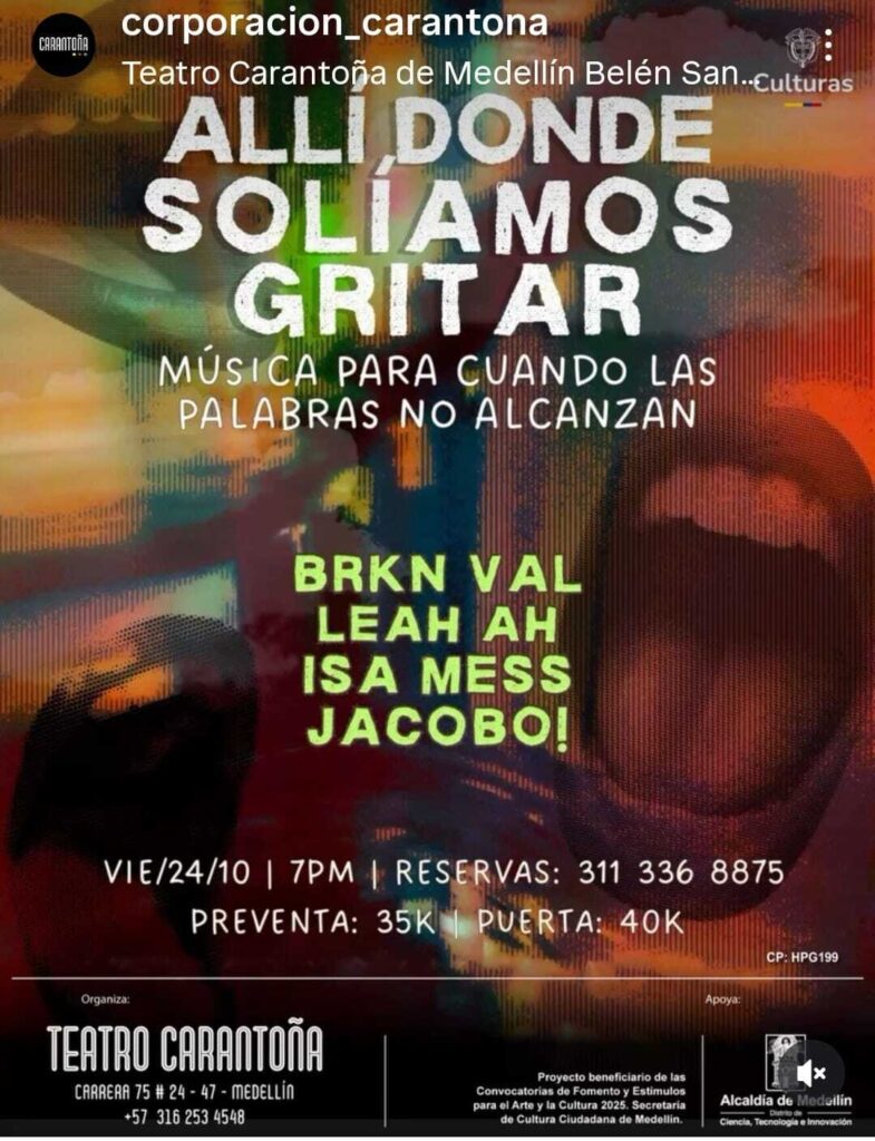 Muestra de resultados de la Beca de creación de dramaturgia 2025 de la secretaría de cultura ciudadana de Medellín. Además de lectura de fragmentos del texto, tendremos muestras de stand-up comedy y presentación de nuevas publicaciones.