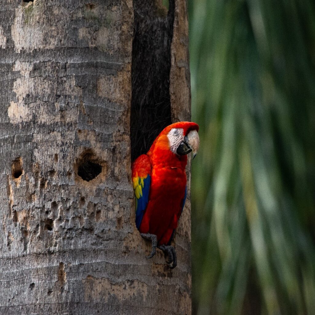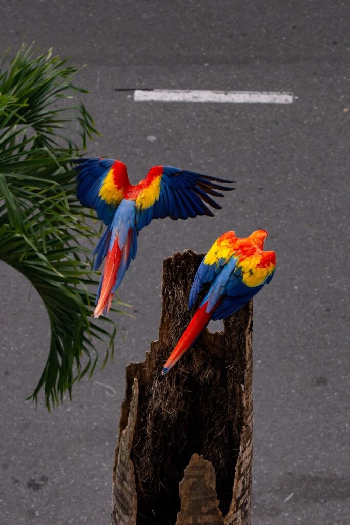 El proceso de nidificación guacamaya bandera (Ara macao) es largo y un poco complicado acá queremos mostrar un seguimiento detallado de un proceso de nidificación de esta ave, en la ciudad de Medellín, Colombia. Las observaciones iniciaron en octubre de 2025 y culminaron satisfactoriamente el 11 de marzo de 2026 con la confirmación de la salida de dos crías del nido. Este registro es relevante para el estudio de la adaptación y reproducción de ésta y otras especies en entornos urbanos intervenidos.